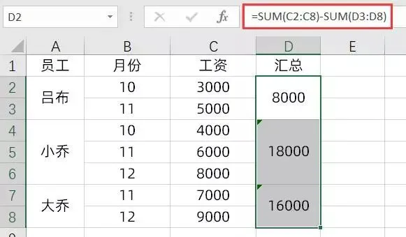 此方法在处理合并单元格上十分有用,如对合并单元格求和。