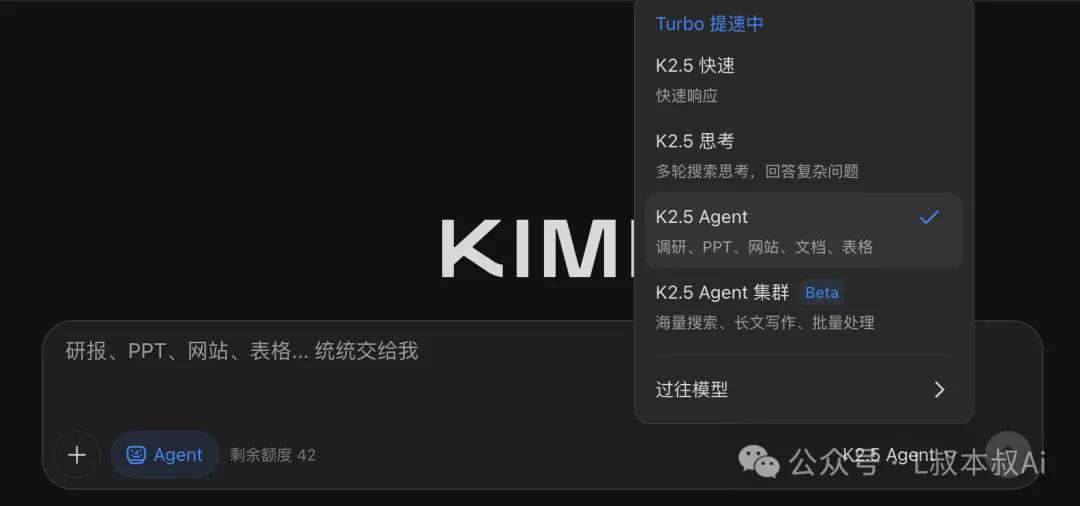 首先,打开kimi的官网,直接选中K2.5 Agent模式,