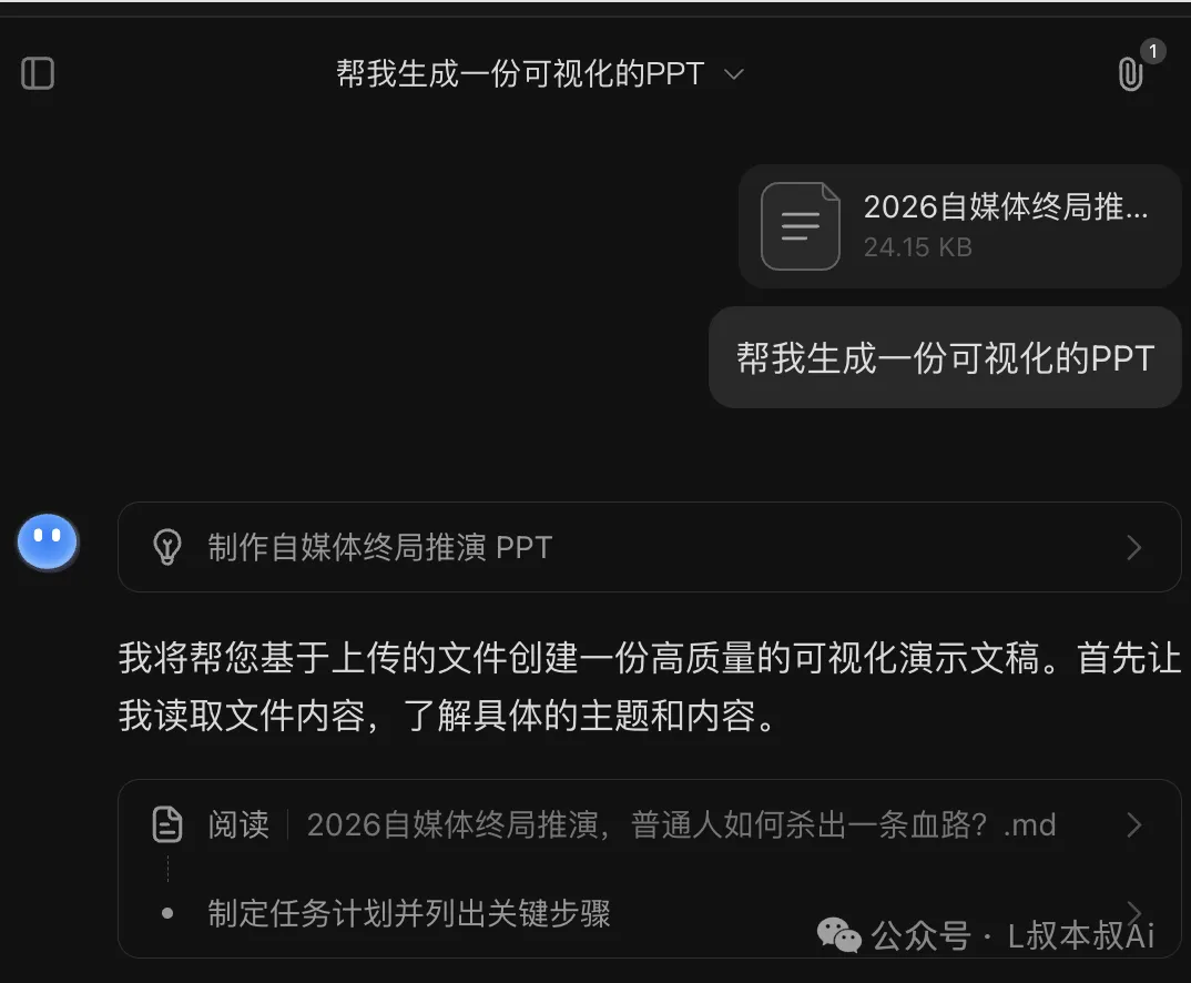 我上传了一份我之前写好的文章上去,和KIMI说,用尽你的毕生所学,给我好好的设计这份PPT!(像极了我以前的甲方)