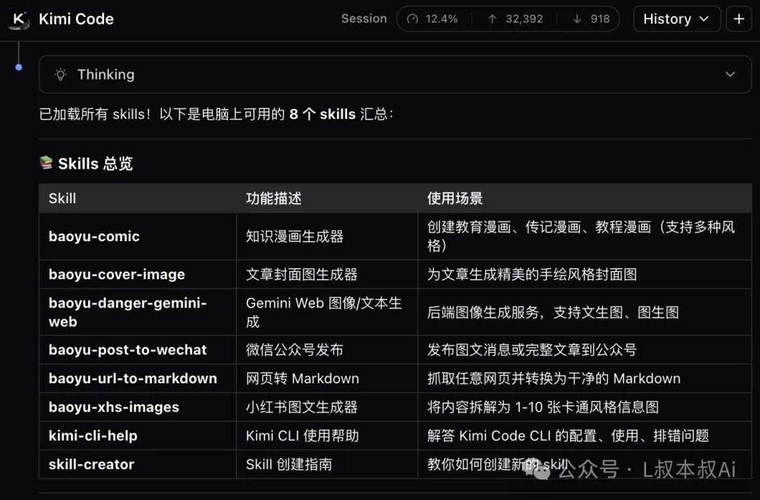 Kimi Code 这次自带了不弱于Claude code 的SKILLS生成和部署的能力,