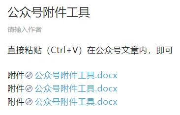 📢 使用场景:适用于公众号中插入各种文档(招聘岗位表、报名表、公示名单、报告、文件资料)等Word、Excel、PDF、PPT、ZIP等附件,用户可在线预览、下载分享!