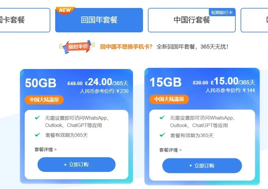 中英流量共享:这是它最核心的优势。你购买的英国套餐流量,回国后也可以继续使用,对于假期回国的学生来说超级方便,不用再额外买流量包。