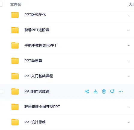 每天分享一个合集资源,今天分享的是,PPT 教程资源合集想要提升 PPT 制作能力,却不知从何学起?这套 PPT 教程资源很适合你。涵盖 PPT 版式美化、职场 PPT 进阶、动画制作、入门基础、制作思维、全图开型 PPT 等多方面内容,还有手把手教美化 PPT 的课程。不管是 PPT 新手入门,还是想提升 PPT 设计、动画等技能,都能从这些教程里找到助力,解决 “PPT 学习没方向、技能提升难” 的困扰。百度网盘资源名称: