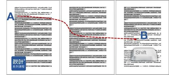 ❷ 如果选择跨 N 页的局部文本,光标定位在起点A→翻页到终点所在处B→在B处按住【Shift 键】并单击鼠标即可。