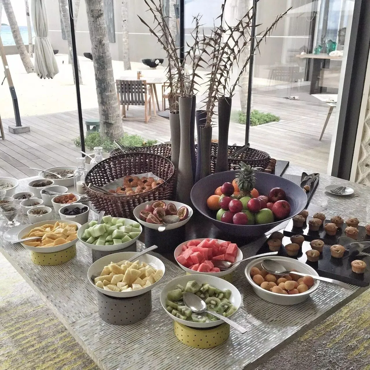 因为岛上不产任何食材,因为一切原材料都是需要运送过来的,为了保证新鲜,酒店每天早上都会安专机运输当日最 fresh 的食物,从水果、鸡蛋、到奶制品,都是如此。