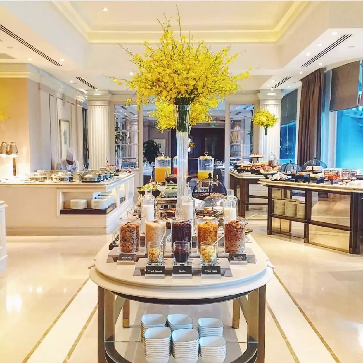 各式时令的新鲜水果,西班牙伊比利亚火腿,黑松露,龙虾这些高级讲究的食材,都能在这里的早餐品尝到,从一日之晨就满足挑剔的味蕾。