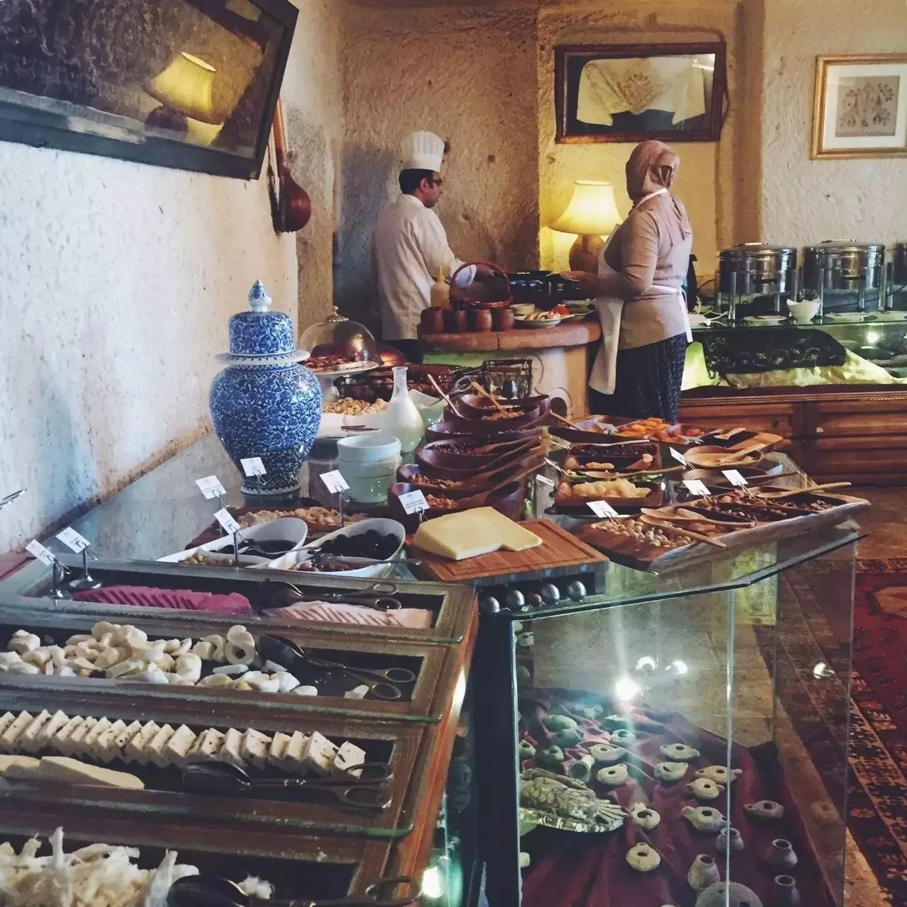 这里当然有很多具有土耳其特色的餐点。例如不可错过的现做土耳其烤饼,亲切的当地阿姨会根据你的喜好加上蔬菜,cheese等馅料,非常美味。值得一提的是,这边的所有蔬菜都是在酒店后院的农庄有机种植的,新鲜度和品质绝对满分。