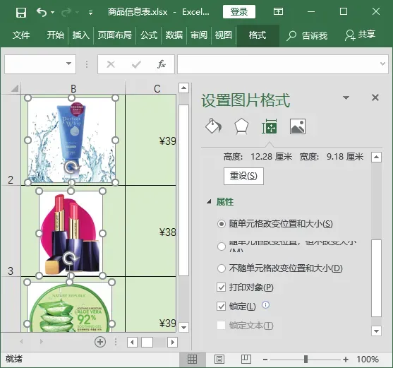 如果想让图片的大小随着单元格的大小变化而变化,那么可通过【设置图片格式】任务窗格进行设置,具体操作步骤如下。