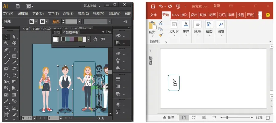 步骤01:在illustrator软件中打开图片。如下图所示,在文件夹中双击下载好的ai格式或cdr格式的文件打开。注意,电脑要提前安装Adobe Illustrator软件。步骤02:将illustrator软件中的图形拖动到PowerPoint软件中。在打开的素材文件中,选中需要转化格式的成矢量图图形,将图片拖动到PowerPoint软件中,如下图所示。拖动到PowerPoint软件中的图片此时还不能编辑,需要取消组合方能进行编辑。