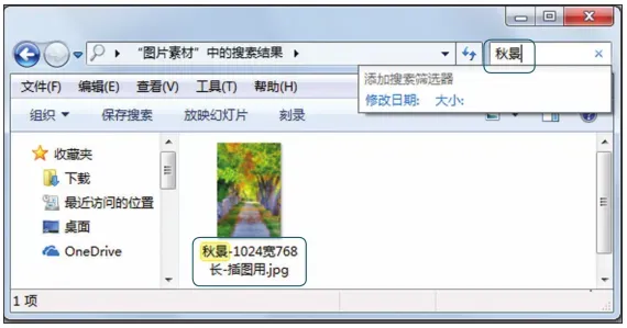 如下图所示,在素材可能存在的文件夹右上方的搜索框中,搜索文件可能包含的关键字,就可以搜索出相关文件。