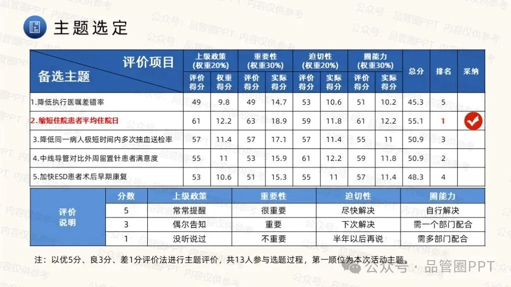 利用四维权重法选定“缩短住院患者平均住院日”这一主题,能够综合考虑医疗效率、患者满意度、资源利用和医疗质量等多个维度,确保选定的主题既具有实际意义,又能全面提升医疗服务水平。