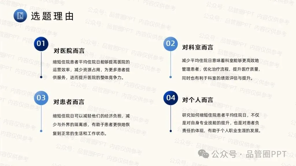 今天为大家带来的品管圈主题为:缩短住院患者平均住院日。