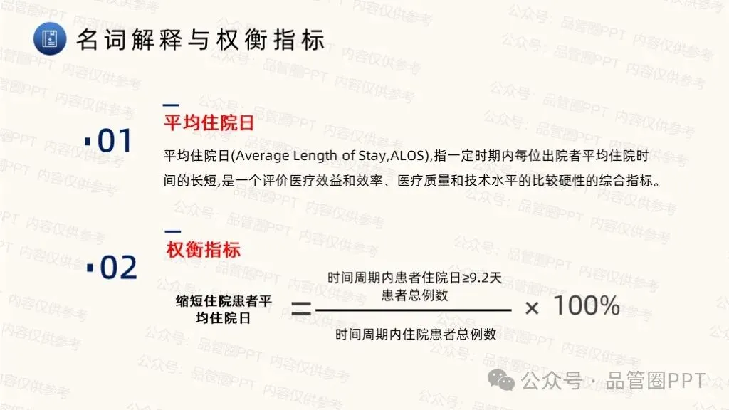 平均住院日(Average Length of Stay,ALOS),指一定时期内每位出院者平均住院时间的长短,是一个评价医疗效益和效率、医疗质量和技术水平的比较硬性的综合指标。