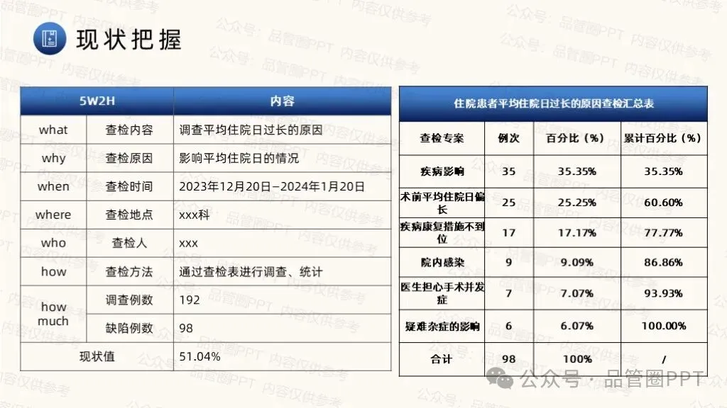 通过总调查192例患者,其中平均住院时间≥9.2天为98例,现状值为51.04%