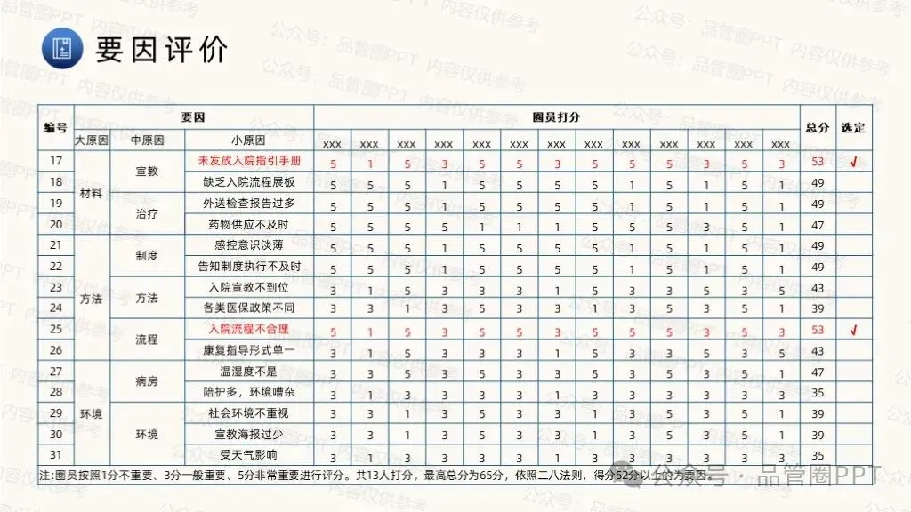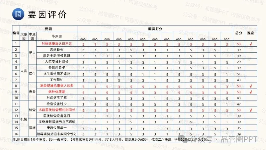 经过深入的要因评价和分析,我们选定了影响活动进展的关键因素,为接下来的改进措施提供了明确的方向和重点。