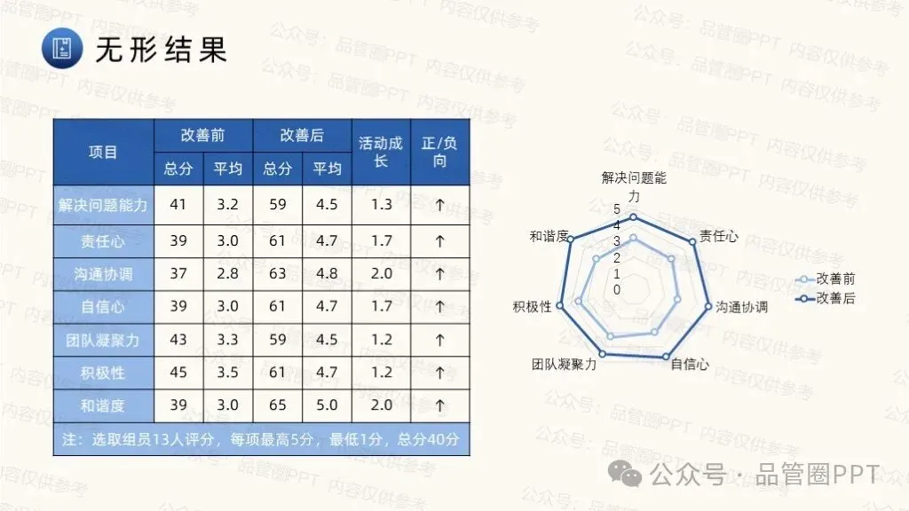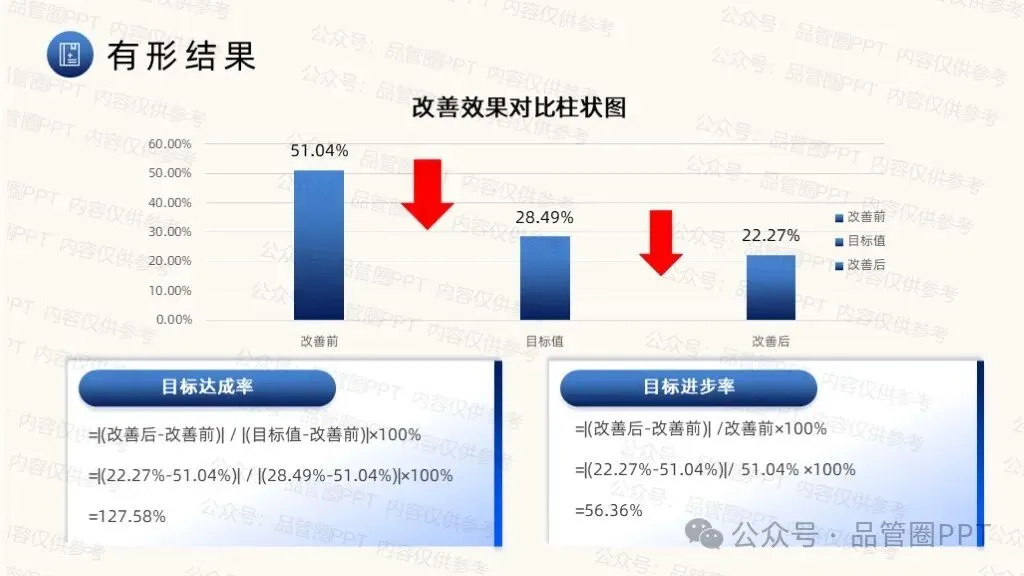 通过柱状图的可视化展示,我们可以直观地看到各项改善措施带来的显著效果,每个柱形都代表了实实在在的进步,充分证明了我们的改善工作取得了积极成效。