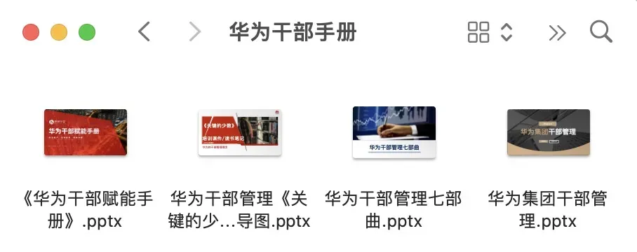 4套华为干部管理PPT,内容完整,制作精美,可自学,可内部培训使用。部分PPT截图展示如下: