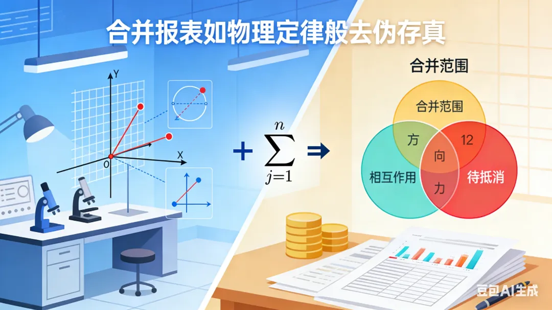 很多财务人觉得合并报表难,核心是没摸清其底层逻辑 —— 它和物理中的 “参照系” “作用力与反作用力” 有着异曲同工之妙。