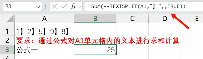 =SUM(--TEXTSPLIT(A1,"】",,TRUE))
