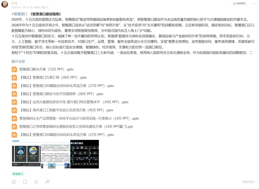 (【数智行业·领地】星球,搜索“智慧港口 ”标签方案完整版)苹果用户公众号回复“1”加木兮或者直接加木兮(MuxiYuebao0920),享受优惠,加入星球~