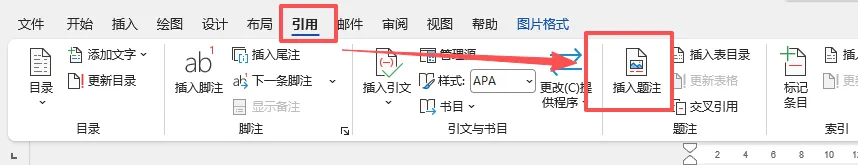 选中需要添加题注的图片 / 表格,点击【引用】选项卡→【插入题注】;