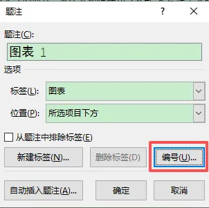 在弹出的对话框中,【标签】选择 “图” 或 “表”,若无对应标签,点击新建标签,输入 “图”/“表” 即可;