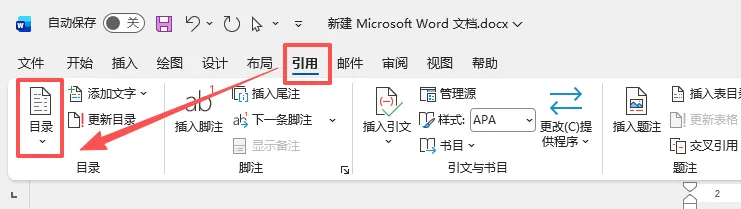 点击【引用】选项卡→【目录】,选择自动目录 1 / 自动目录 2