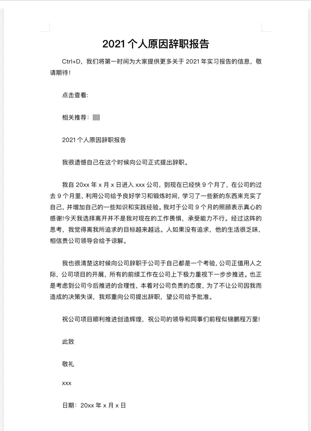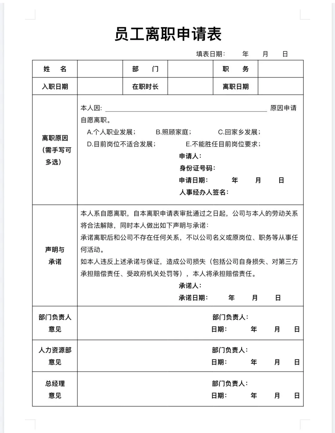 辞职信模板范文 〈word电子版〉