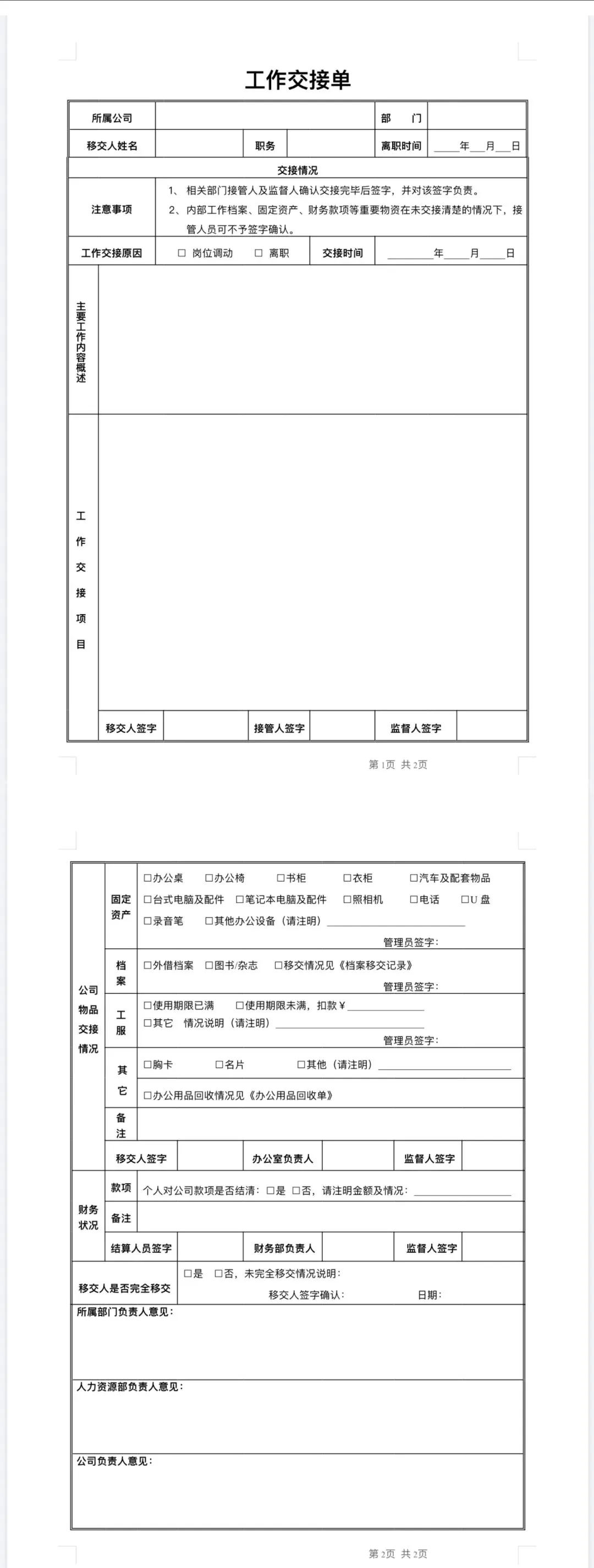 工作交接单▽