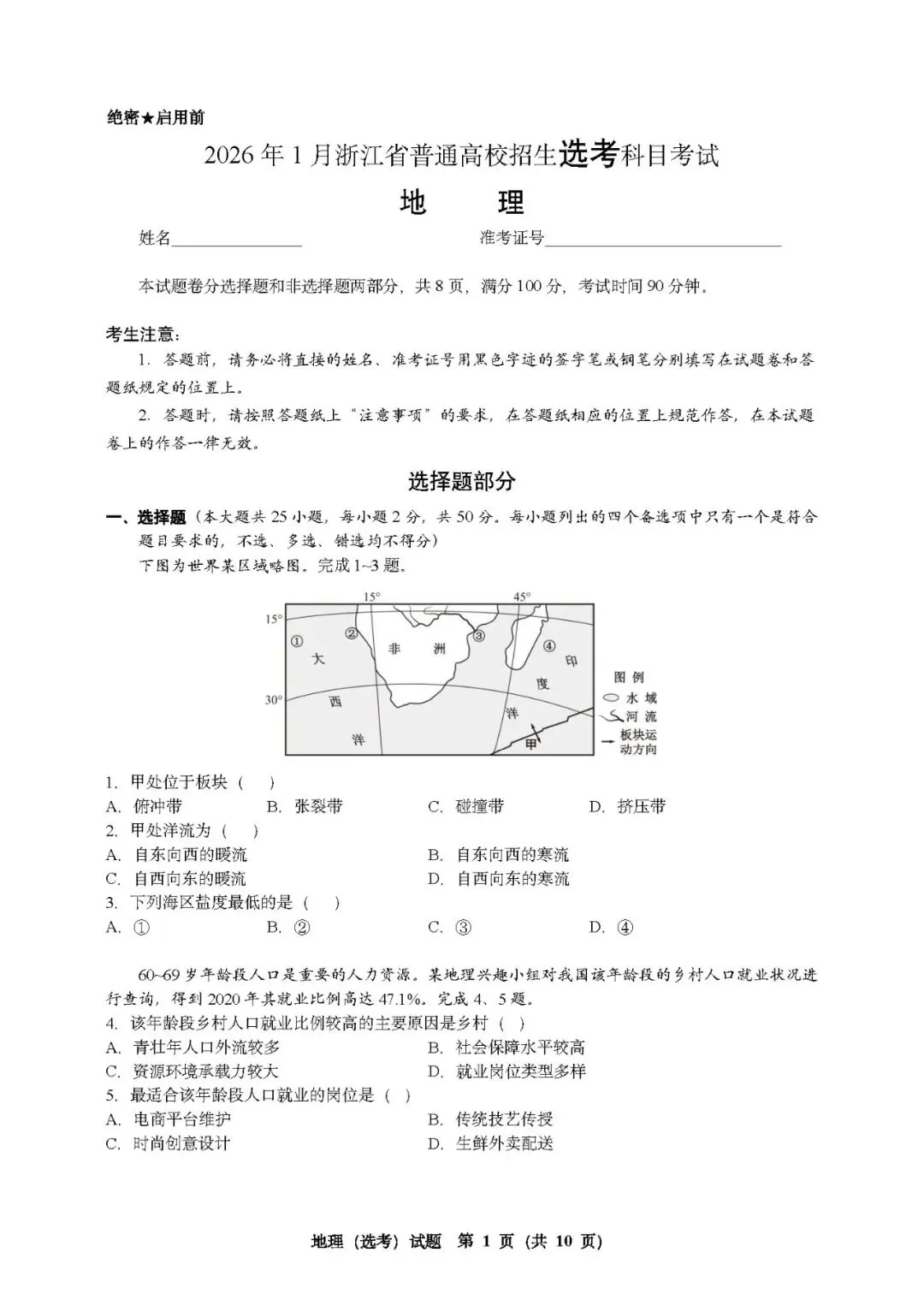 通过网盘分享的文件:2026年浙江1月选考地理试题.docx
