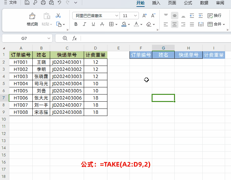 从数组的“开头”或“结尾”快速返回指定行数或列数的数据。行数:指定返回的行数。正数表示“从前往后”取,负数表示“从后往前”取列数(可选):指定返回的列数。正数表示“从左向右”取,负数表示“从右向左”取