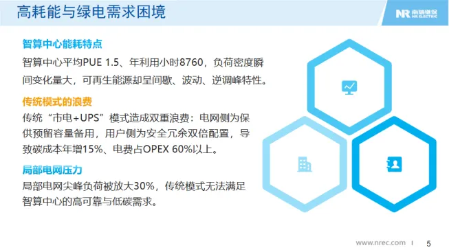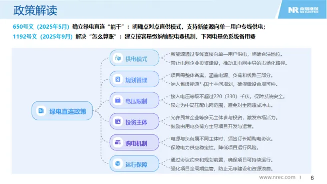 传统“市电+UPS”模式存在双重浪费,电网侧需预留容量备用,用户侧需双倍配置安全冗余,导致碳成本年增15%、电费占运营成本60%以上,局部电网尖峰负荷甚至被放大30%。在此背景下,政策层面持续发力:2025年5月的650号文明确绿电直连模式,支持新能源向单一用户专线供电;同年9月的1192号文建立按容量缴纳输配电费机制,下网电量免系统备用费,推动计费模式从按电量收费转向按接入容量收费,为智算中心的低碳转型提供了政策保障。