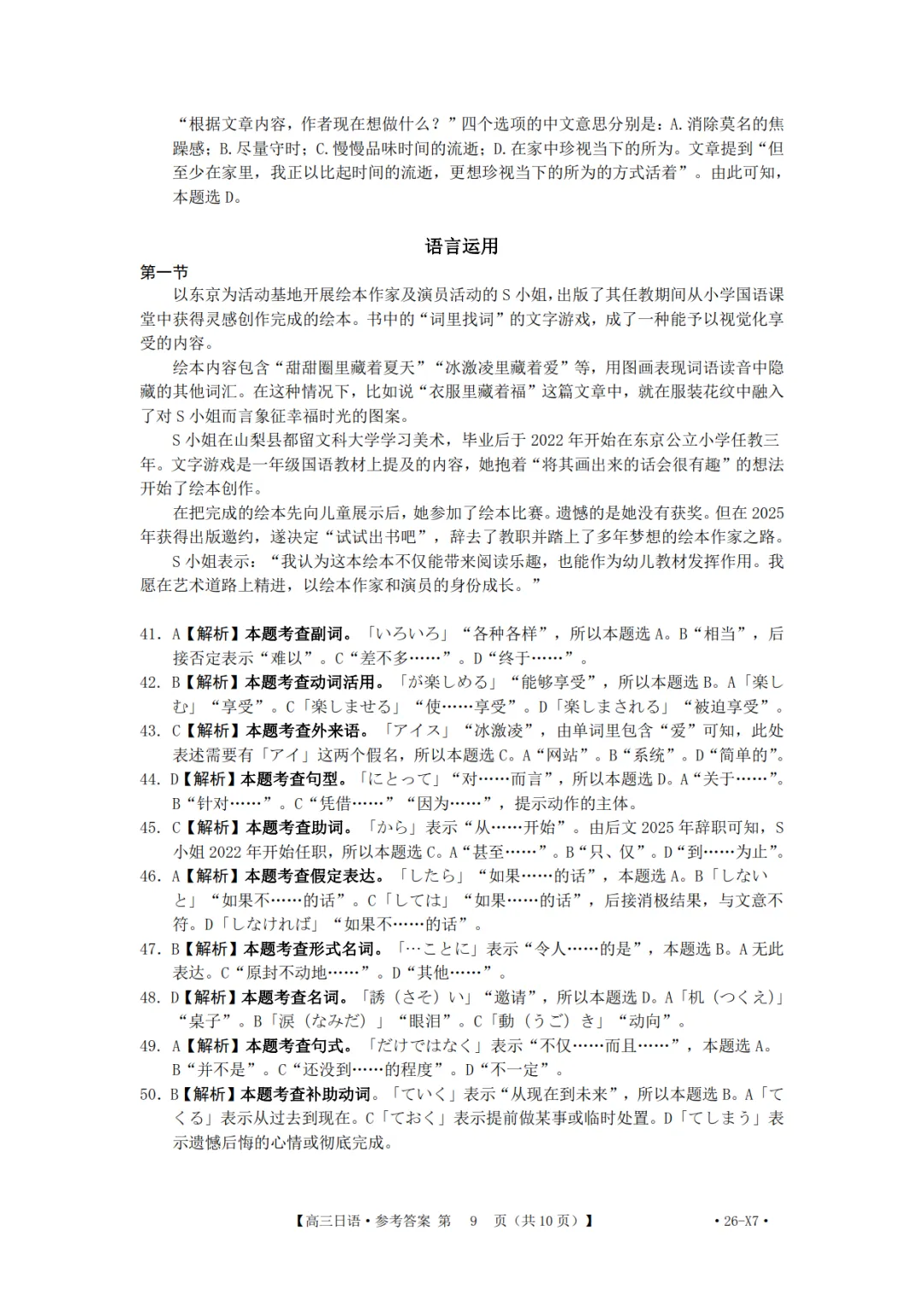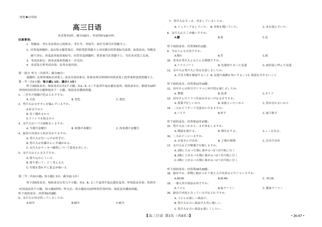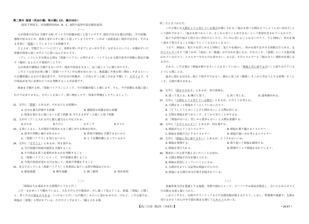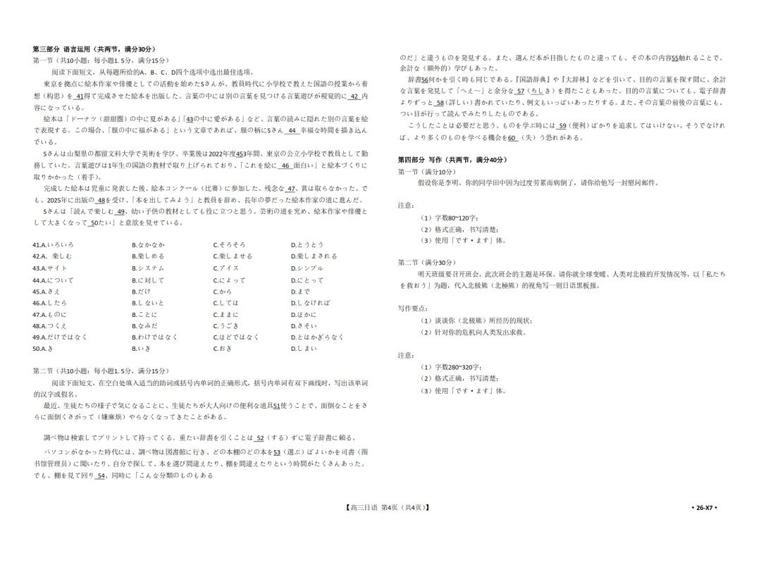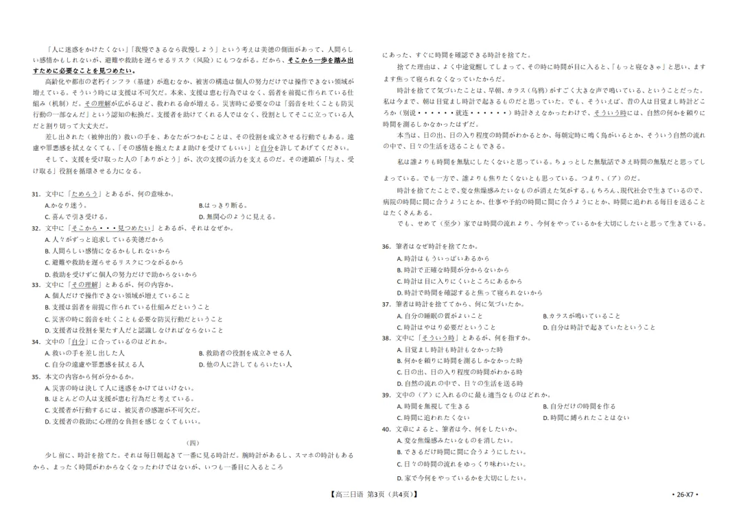 2026届高三(26-X7)日语联考试卷