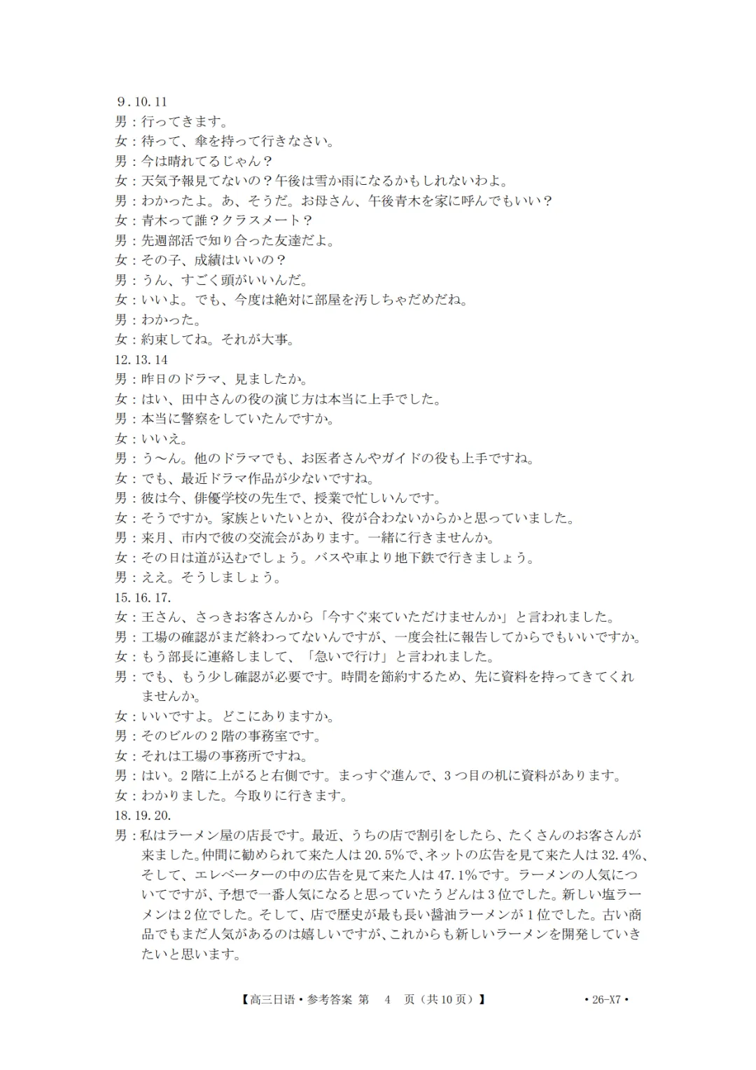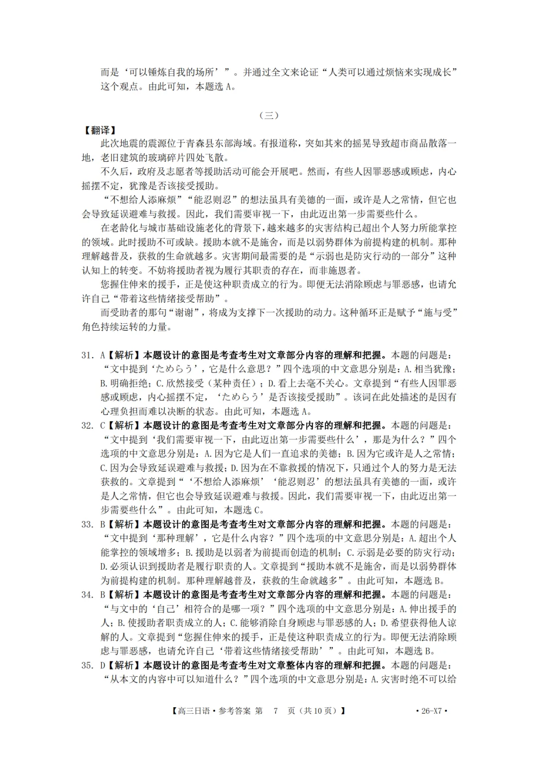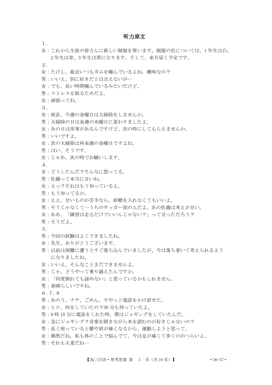 2026届高三(26-X7)日语联考试卷
