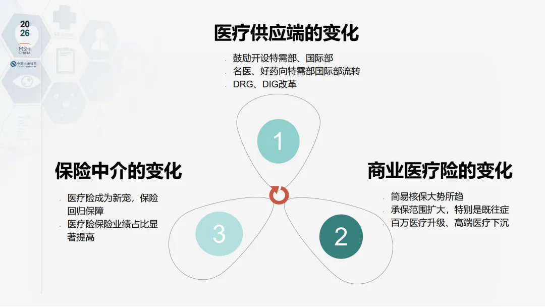与此同时,DRG、DIP改革推动名医、好药向特需部、国际部流转,而医疗险市场也迎来新变革——百万医疗升级、高端医疗下沉,简易核保成为趋势,消费者对医疗保障的需求早已不止于基础报销,更追求优质医疗资源的便捷获取和贴心服务体验。