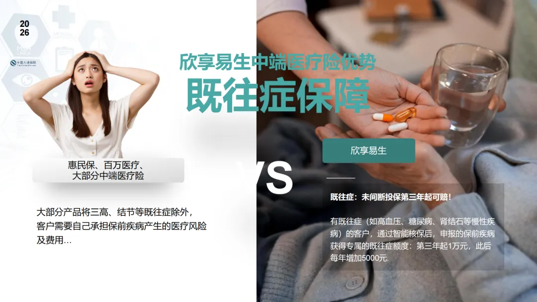 3.用药选择无限制:区别于百万医疗“仅限医保目录内用药”的限制,欣享易生2026对外购药、进口药、靶向药等无清单限制,不限疾病类型,让患者在治疗时无需因费用问题妥协,能获得最适合的治疗方案。