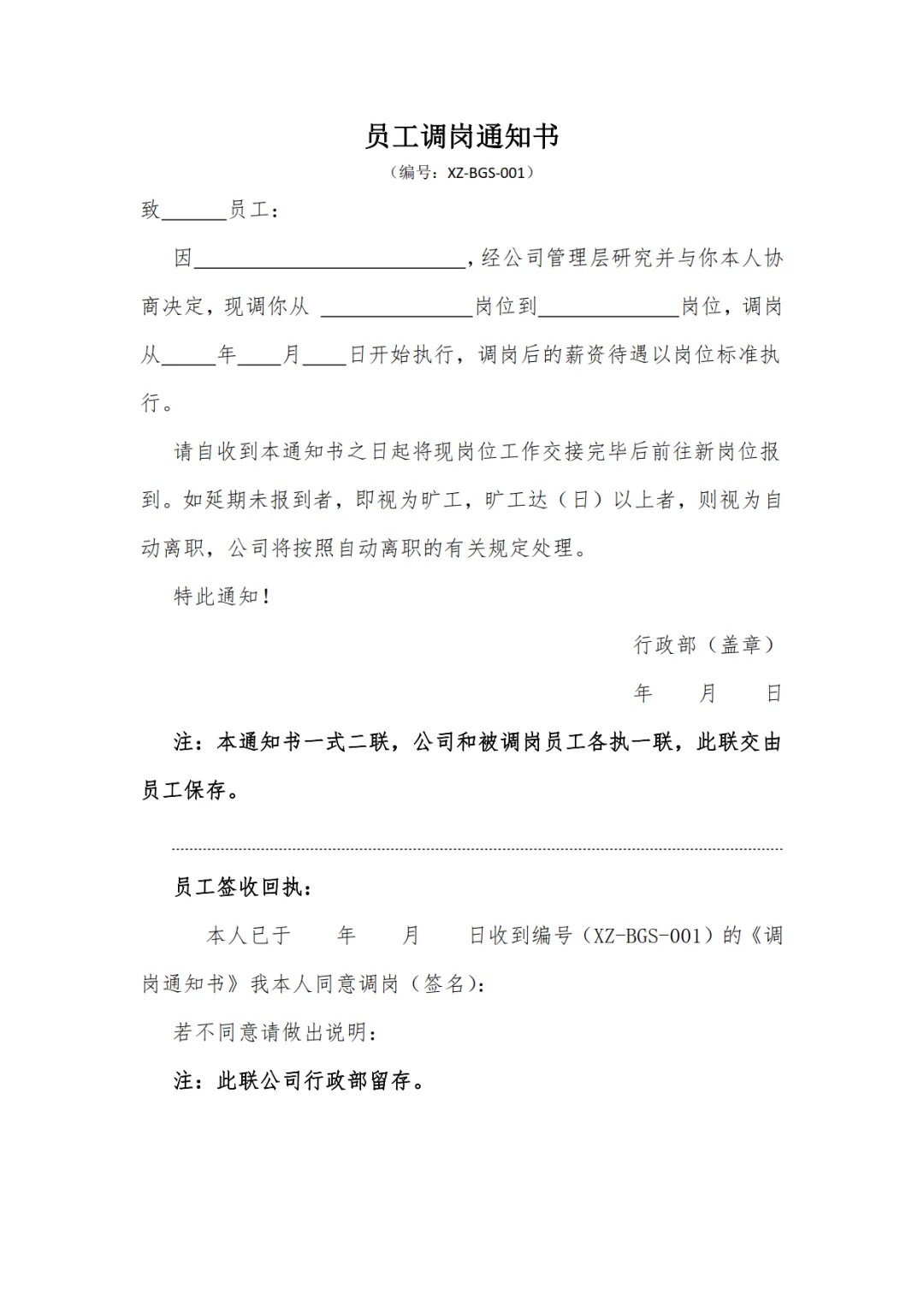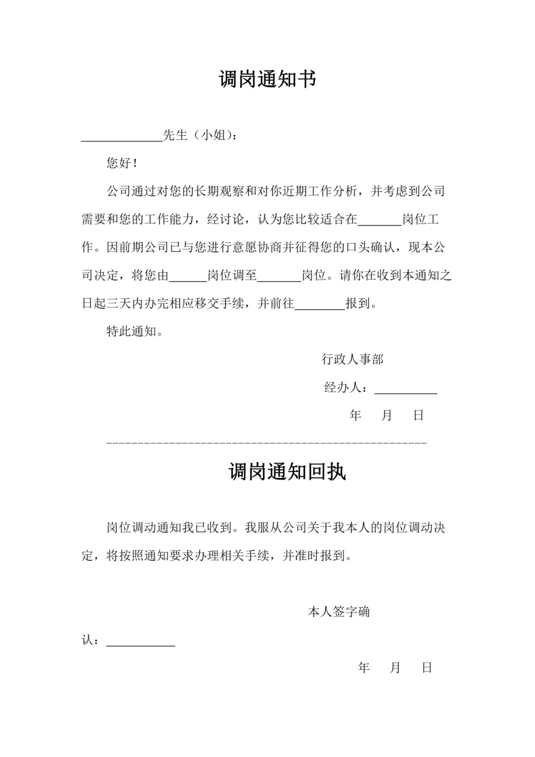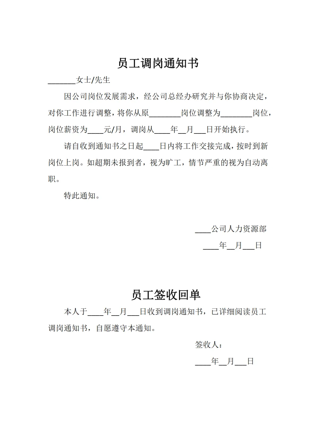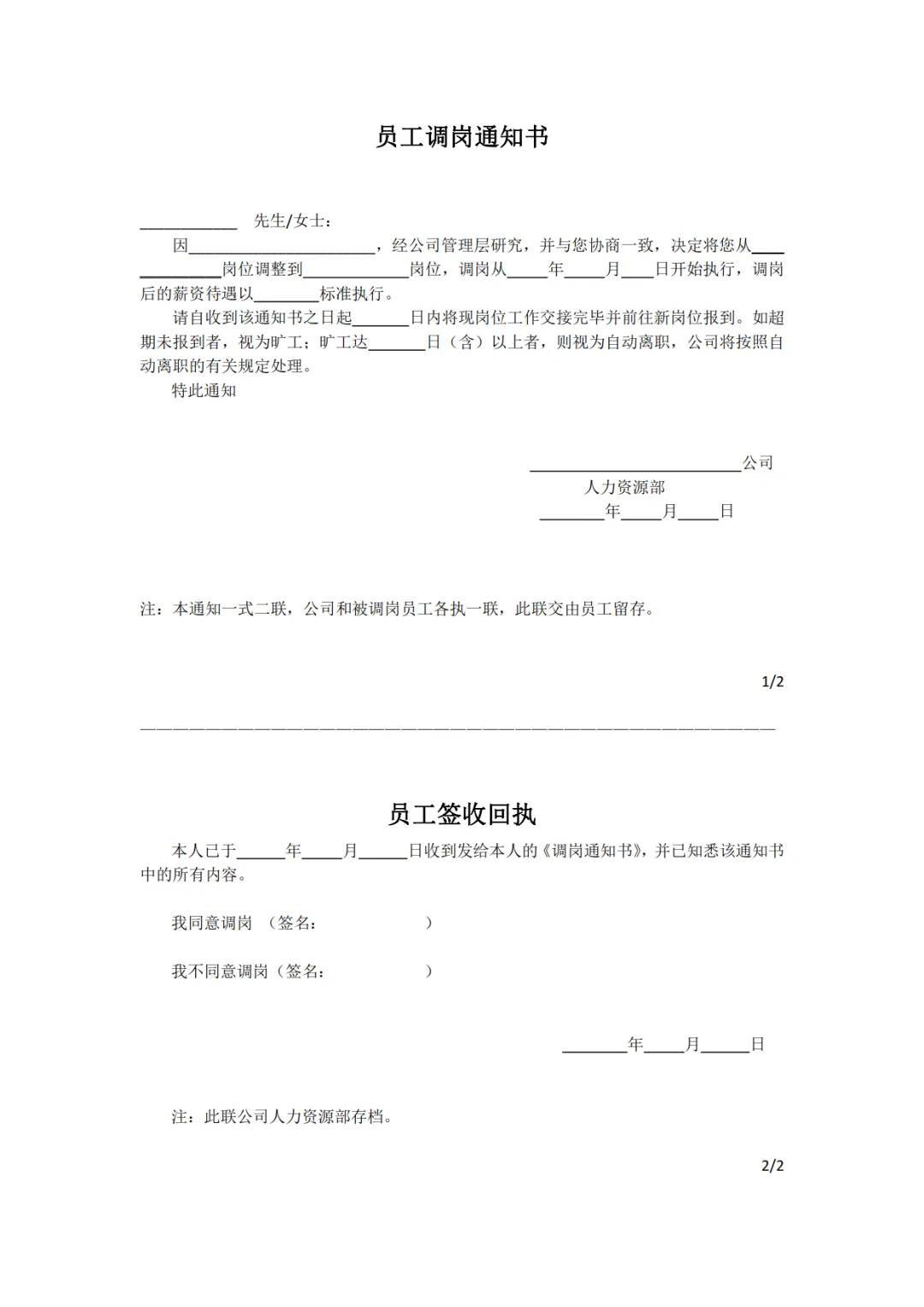 >4款员工调岗通知书模板,WORD文档电子版,可免费下载打印