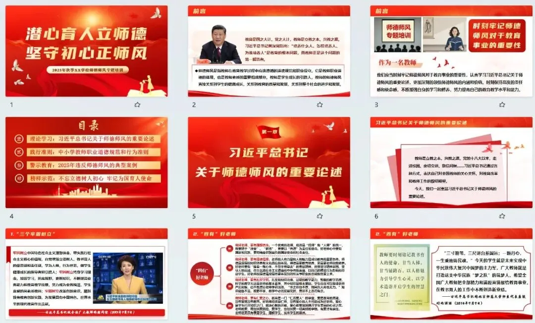 共44页PPT,8500余字配套文稿,涵盖四个核心内容:师德师风重要论述学习、教师职业行为准则、2025年违反师德师风案例及工作要求。图文结合,讲解生动易懂。