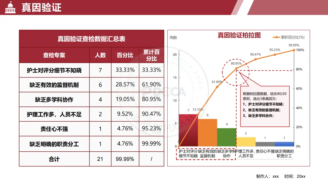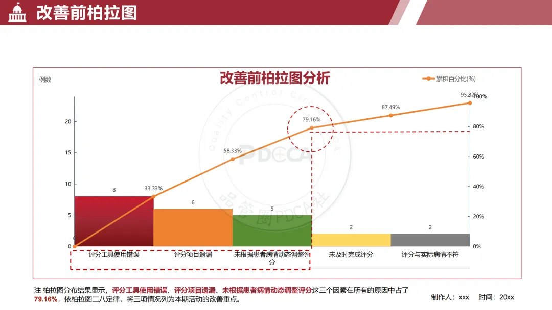 项目组通过现状调查与柏拉图分析,精准地锚定了三大症结,占据了近80%的错误原因: