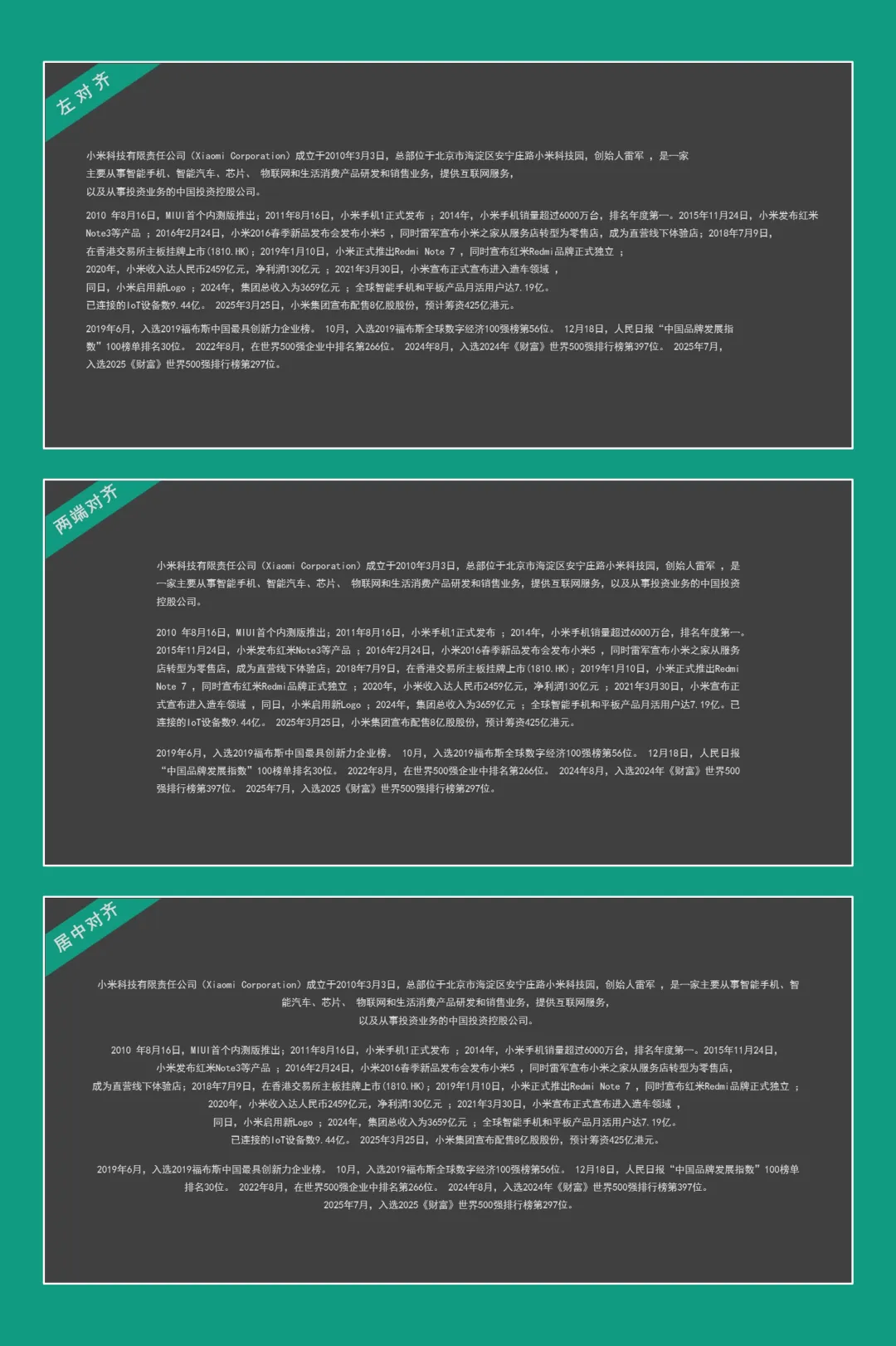 首先遵循的排版准则是:对齐工整、文字统一、划分层级。其中,整齐是基础的基础。