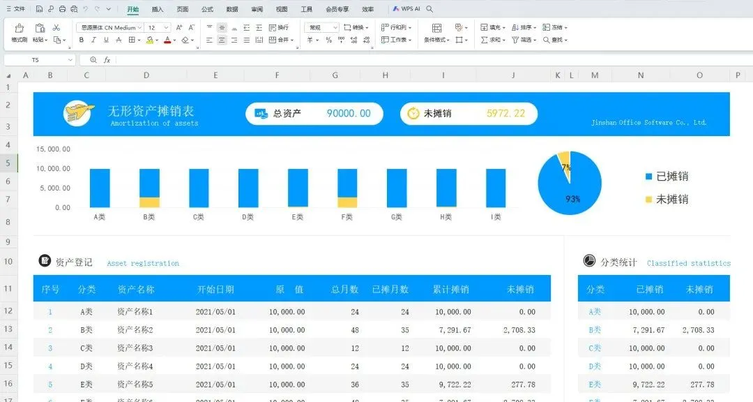 输入原值、使用年限,自动计算月摊销额/累计摊销/净值