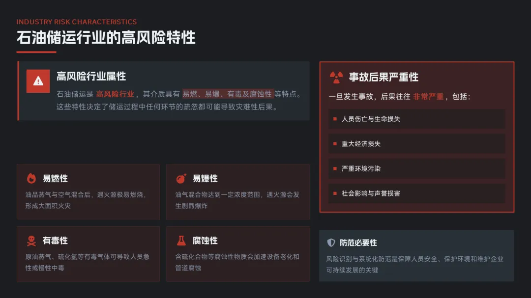 石油储运是一个高风险行业,其介质具有易燃、易爆、有毒及腐蚀性等特点。一旦发生事故,后果往往非常严重。