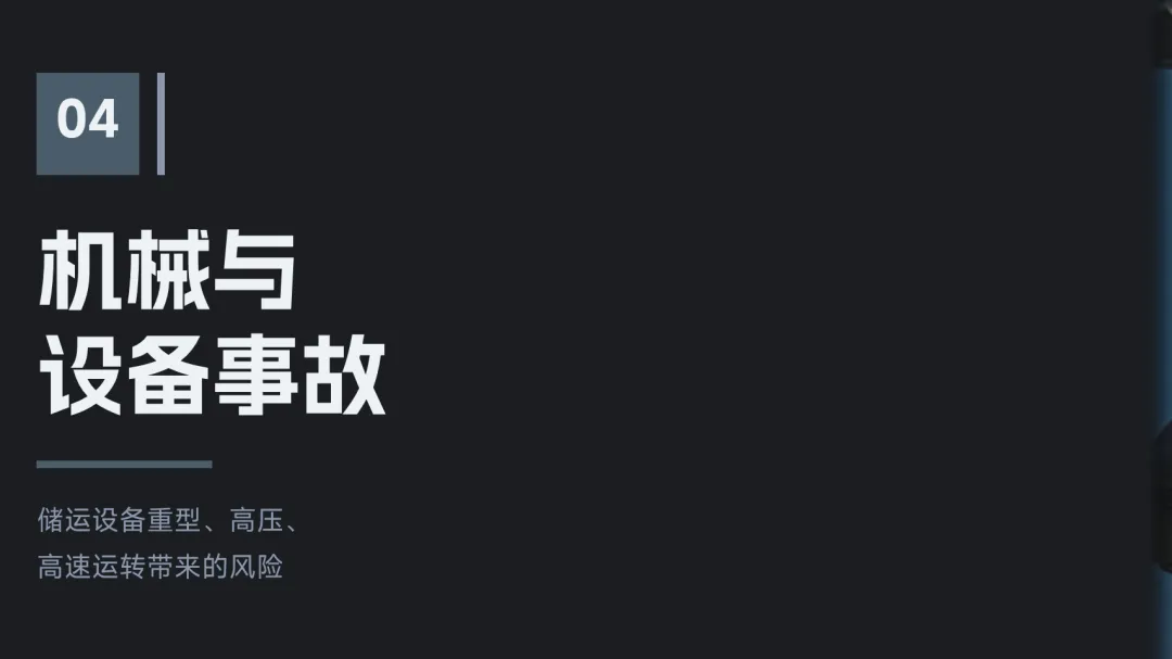 LNG温度极低,如果处于低温环境的人体未采取保护,将可能会引起冻伤。LNG接触皮肤时,可造成与烧伤类似的灼伤,如果暴露于寒冷的气体中,即使时间很短,不足以影响皮肤,但对于眼睛这样的脆弱组织会受到损害。油品码头(液体化工码头)等临海、临河作业,易发生落水淹溺事故。汽车/火车装卸栈台,由于人员站位不当、司机操作不当等原因,造成人员或设备受到损害。
