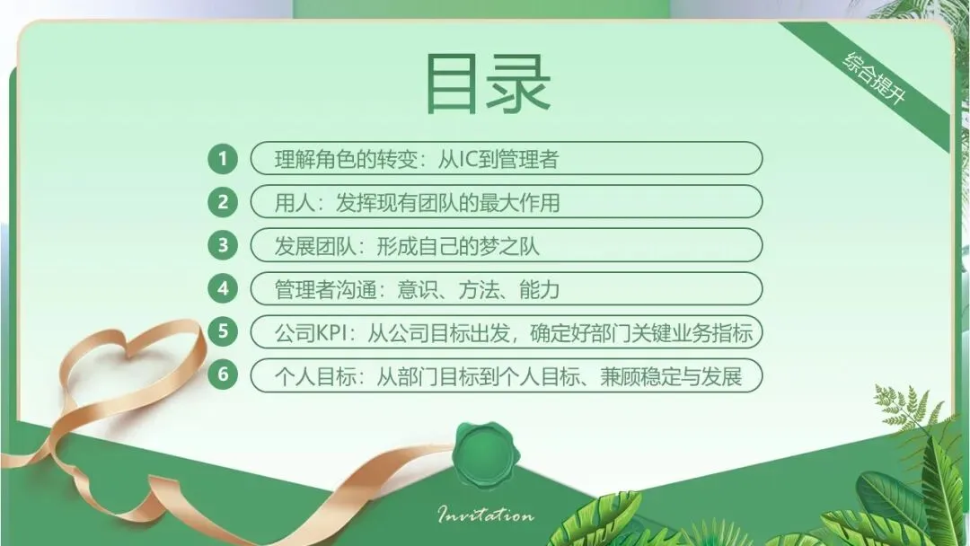 当你真正实现了这场转型,不仅能摆脱“忙而盲、累而无功”的困境,实现个人职业价值的提升,更能带领团队创造卓越业绩,为企业的高质量发展注入源源不断的动力。