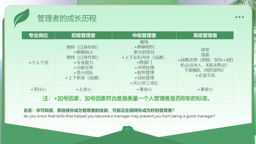 破解这些误区,核心是实现三大认知转变:从“专注做事”到“聚焦带人”,从“个人优秀”到“团队卓越”,从“被动执行”到“主动赋能”。