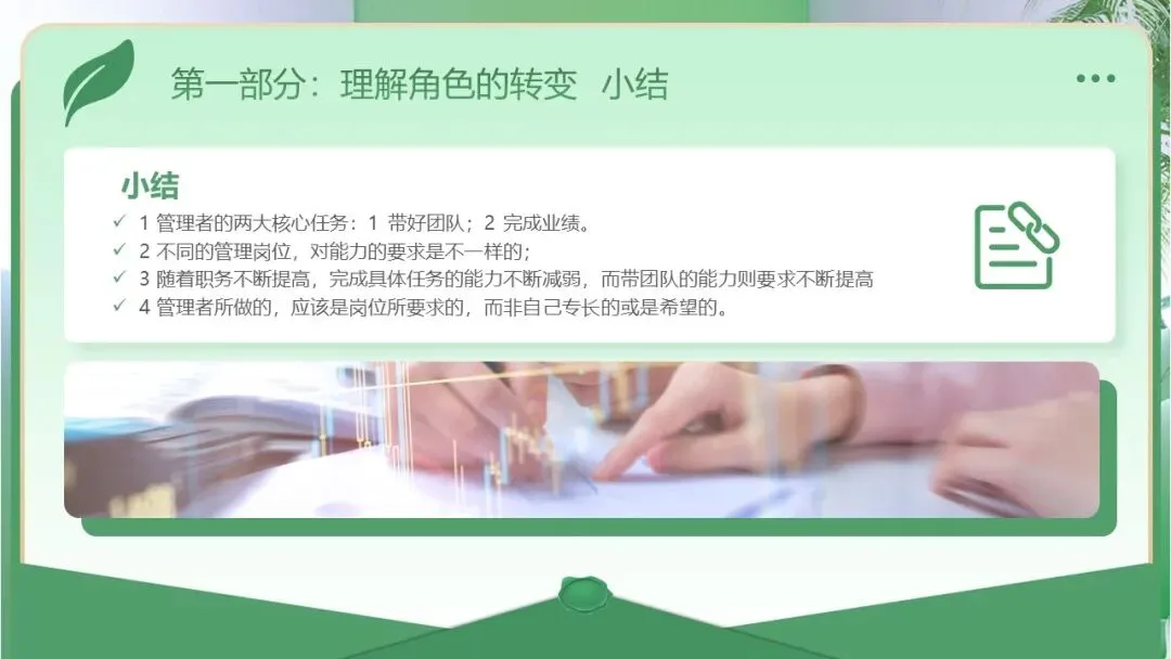 它要求你放下“业务骨干”的执念,走出管理误区,实现从“做事”到“带人”的思维跃迁;要求你打磨用人、沟通、目标管理、团队赋能等核心能力,打造高绩效团队;要求你坚持以身作则、持续学习,在实践中复盘,在复盘中共成长。