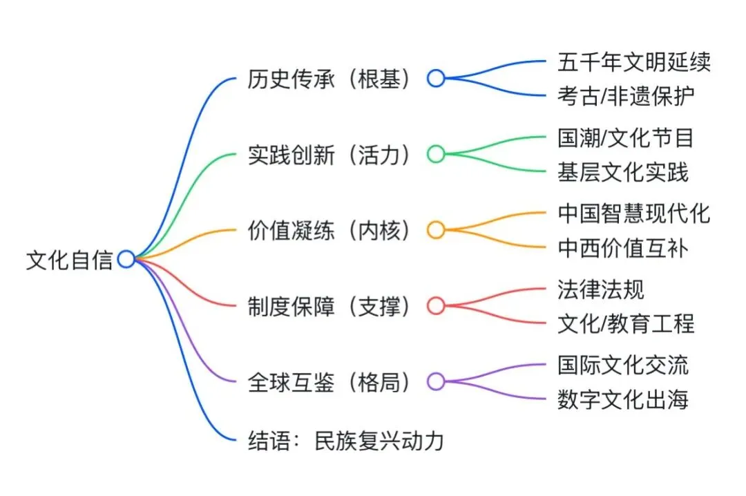 深入思考文化自信,会发现它从不是静态的历史回望,而是一场扎根过去、面向未来的动态生长——以传承为根、创新为枝、价值为魂、制度为骨、互鉴为叶,五维共生,成为民族复兴的精神底气。
