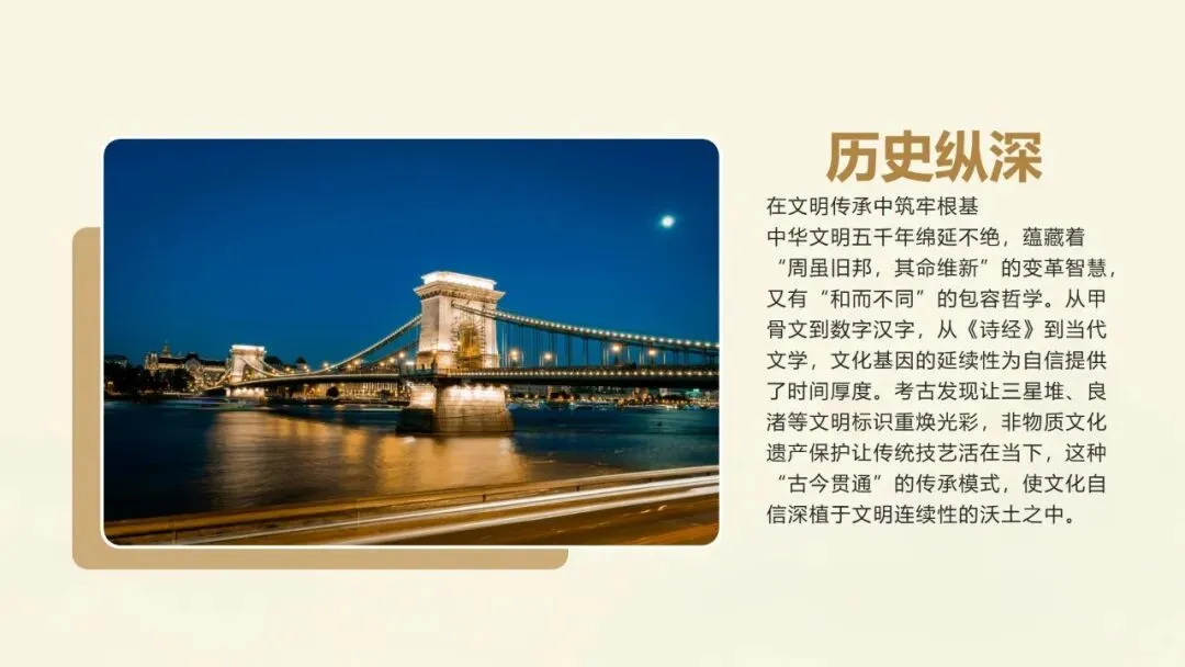 五千年文明从未中断,从甲骨文到非遗技艺,从良渚遗址到古典典籍,传承不是复刻,而是“古今贯通”的智慧接力,为自信筑牢根基;