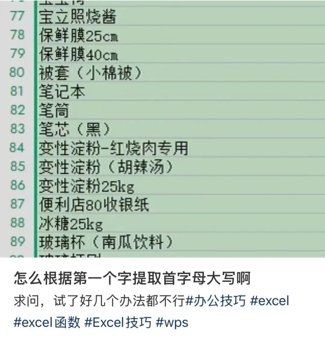 有小伙伴提问:EXCEL中如何根据汉字返回对应拼音首字母大写?