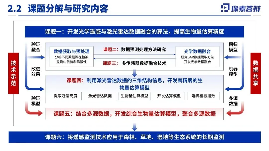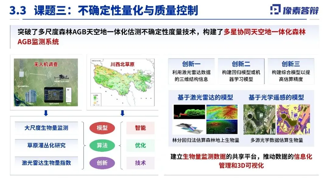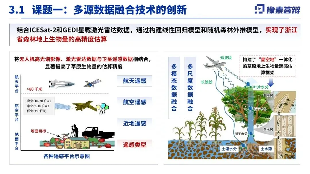 二、技术路线系统,突出多源融合与精度攻关研究核心是构建“星空地”一体化的监测体系。其技术路线设计系统性地融合了卫星遥感、航空遥感与地面观测数据,旨在通过多源数据协同与机器学习等方法,攻克从单木到区域尺度的生物量高精度反演与不确定性量化等关键难题,体现了较强的技术集成与创新能力。